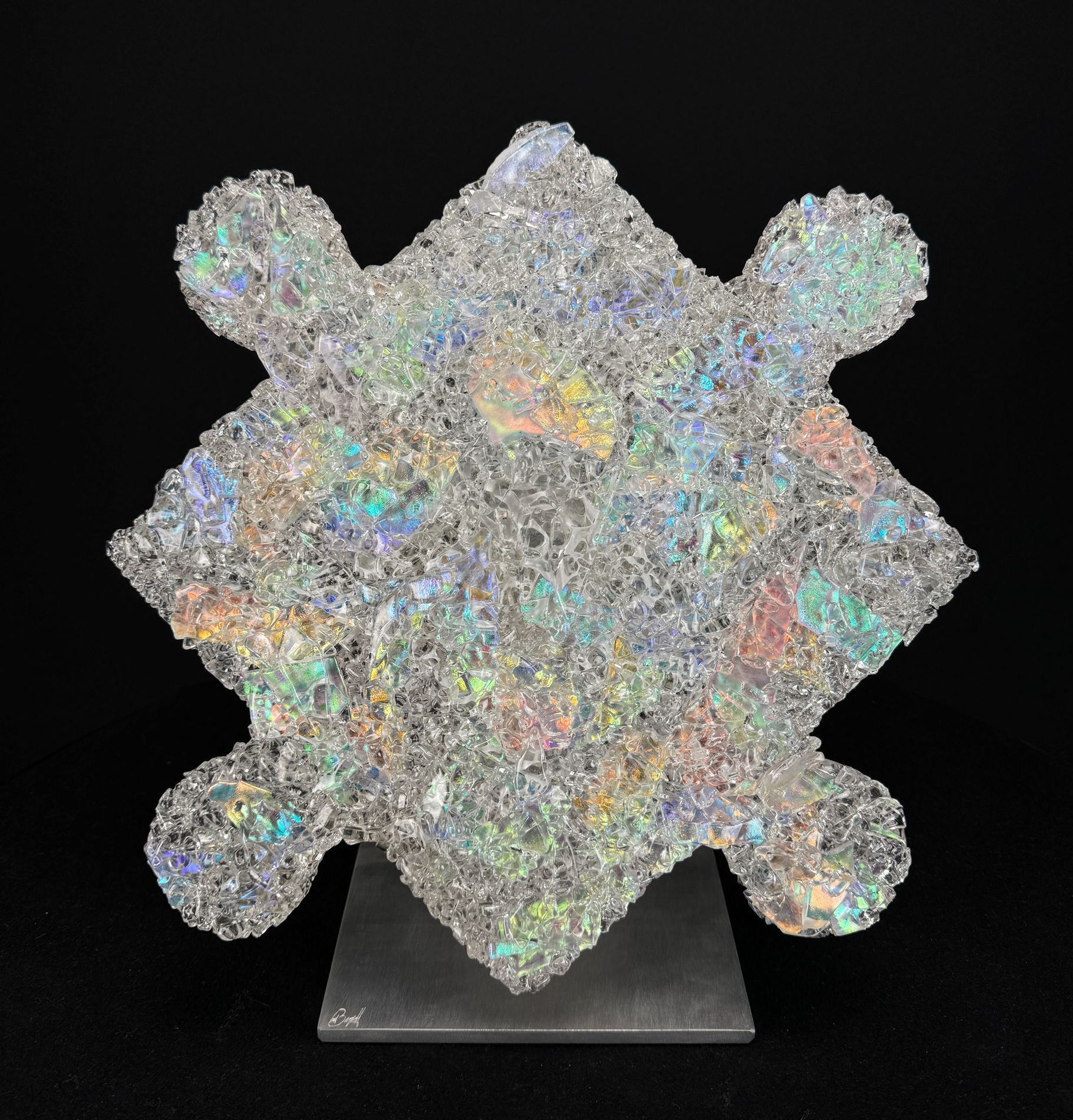 These Puzzlers feature fused glass chunks to create a textured surface that resembles droplets on a glass surface.